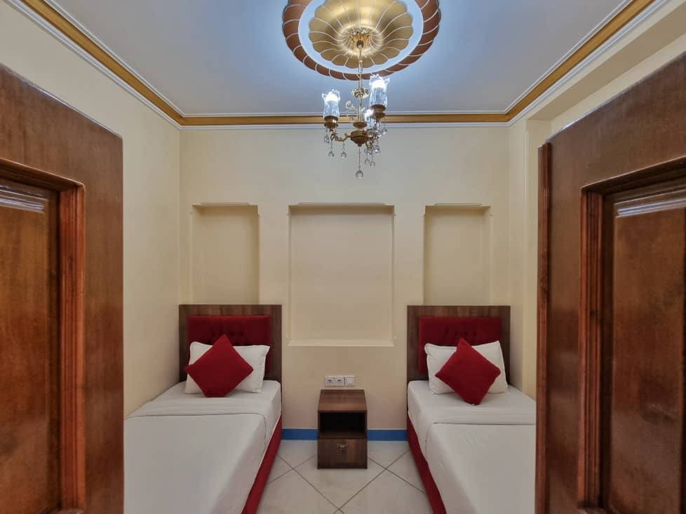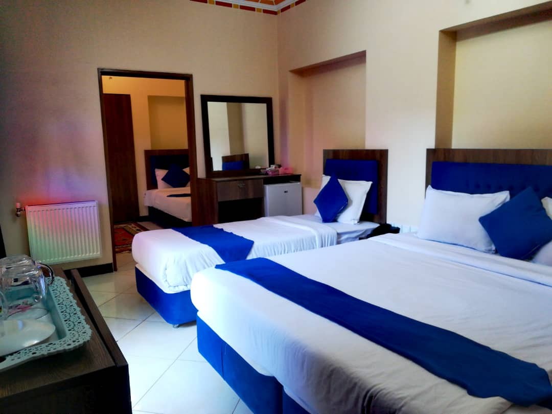 اقامت کودک زیر 3 سال (درصورت عدم استفاده از سرویس) رایگان میباشد و بازه سنی برای اقامت کودک بین 3 الی 6 سال (درصورت عدم استفاده از سرویس) نیم بها محاسبه میگردد. لازم به ذکر است : اقامت رایگان و نیم بها تنها برای یک کودک محاسبه میگردد.